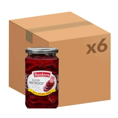 Baxters Sliced Beetroot Pickled in Malt Vinegar with 33% Extra, 455g, Pack of 6