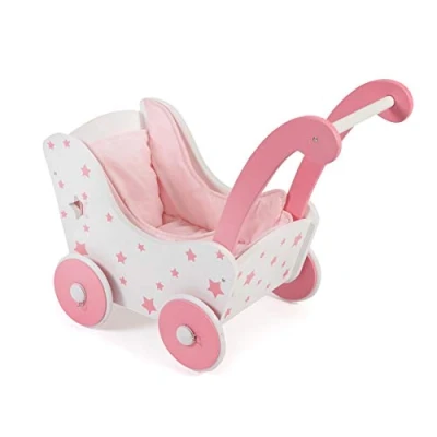 Bayer Chic 2000 425 88 Wooden Doll's Pram, Stars Pink, 55 x 31 45 cm