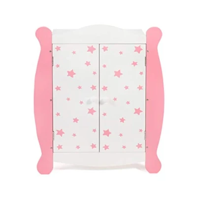 Doll Wardrobe with Clothes Rail and Three Hangers Offers plenty of space and storage space for all accessories Dimensions: 22 x 46 x 59 cm, weight: 3 kg Encourages your child's creativity Suitable for the Bayer Chic 2000 Stars pink doll furniture series, Manufacturer: Bayer Chic 2000