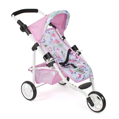 Bayer Chic 2000 Lola Doll's Buggy, Jogging Doll Jogger, Pram, Flowers, 612 53, Pink