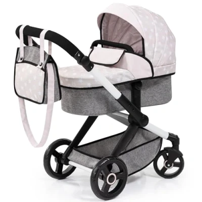 Bayer Design 17031AA Combi dolls pram Xeo, stroller, height adjustable handle, convertible, bag, white grey with stars