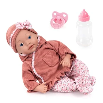 Lifelike Reborn baby doll with a size of 38 cm / 15 inch Stuffing for a lifelike feeling when carrying Lovingly modelled face and realistically designed hands and feet Baby doll wears elaborate clothing with matching hat With dummy and bottle for comforting and feeding, Manufacturer: Bayer Design