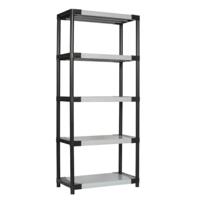 Bayersystem SMARTPLAST 800 Storage Shelving Plastic Unit with 5 Shelves, 185 x 80 40 cm, up to 350 kg, Heavy Duty Shelving, Basement Shelf, Workshop Plastic, Grey/Black