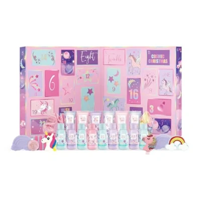 DAYS: Treat yourself to 24 days of magic, with shower gel, lotion, bath fizzers and more in this vegan-friendly beauty advent calendar BEAUTY TREATS: Unwrap a new treat every day for an indulgent experience filled with sweet scents and luxurious bubbles GIFT SET: Perfect as a Christmas gift for a loved one or even as a special treat for yourself FEATURES: Vegan-friendly products made from high-quality ingredients that nourish the skin while delighting the senses BATH AND BODY: Luxuriate in the candy-themed scents whilst pampering your body with this delightful set of Beauticology products