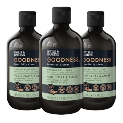 Baylis & Harding Goodness Oud, Cedar Amber Bath Soak, 500 ml (Pack of 3) Vegan Friendly