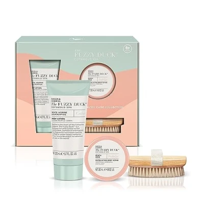 LUXURY GIFT: Treat yourself or a loved one to the perfect exfoliating treat in this Luxury Body Care Gift Set from Fuzzy Duck Cotswold Spa BODY CARE: Pamper yourself with this spa-quality set, featuring 200 ml body lotion, 250 ml exfoliating body scrub and a exfoliating scrub brush for a truly luxurious experience GIFT SET: The ideal present for vegan-friendly individuals looking to add a touch of luxury to their skincare routine PAMPER TREATS: Enjoy the soothing benefits of the fuzzy duck Cotswold spa range, leaving your skin feeling refreshed and revitalised VEGAN-FRIENDLY: Each item within this gift set is vegan friendly, making it suitable for those seeking cruelty-free beauty products
