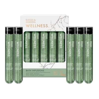WELLNESS GIFT SET: Treat yourself to a pack of calming plant-based Bath Infusions, a perfect way to revive and soak in the tub for some self-care bliss VEGAN FRIENDLY: Made with naturally derived ingredients, this Vegan Friendly set offers an uplifting aroma using aromatic basil leaves and soft lime HEALTHY FORMULATION: Formulated with gentle ginger extracts for a comforting experience; refreshing and revitalizing your senses while bathing NATURAL INGREDIENTS: Contains natural ingredients like plant-based crystals for soothing relaxation after a long day, an ultimate pampering treat PERFECT PRESENT: Ideal as a gift or simply to indulge in yourself, Baylis & Harding Wellness Bath Infusions Gift Set is the epitome of luxurious bath time experiences