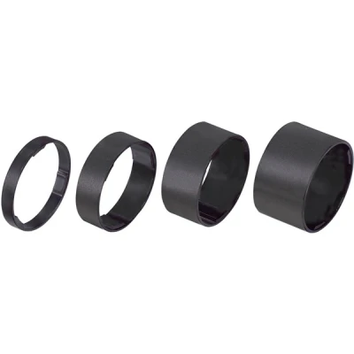 Ultra-lightweight aluminum spacers.Unique design saves up to 38% on weight compared to ordinary aluminum spacers.Set of 4 spacers: 5, 10, 15, 20 mm.Diameter: 1.1/8”.Set weight: 20g.