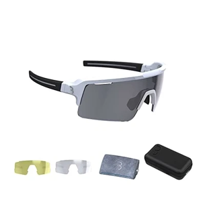 BBB Cycling Fuse Glasses for Men and Women Comes With 3 Interchangeable Lenses: Smoke, Yellow Clear Road MTB Matt White BSG 65