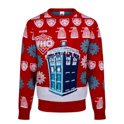 BBC Doctor Who Christmas Jumper for Men, L, Red