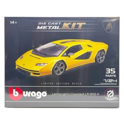 LAMBORGHINI COUNTACH MODEL KIT: Bburago offers a real assembly kit to create a 1:24 scale replica of one of the most iconic supercars, the Lamborghini Countach. The model is designed to reproduce the details and characteristics of the real car in an extremely authentic way. The product is officially licensed by Lamborghini. TECHNICAL FEATURES: Discover the thrill of model making with our collectible product! Assembling this Lamborghini Countach model offers an engaging and rewarding experience, perfect for those who love to build with attention to detail. The 1:24 scale Lamborghini Countach Model Kit is available in yellow. RECOMMENDED AGE: Scale model perfect for collectors aged 14 and over. IDEAL AS A GIFT: Are you looking for an original and refined gift for a car enthusiast? A scale model car is the perfect choice! Whether they are an experienced collector or a novice, a quality model car will win them over and enrich their collection. Also perfect for those who love to build, assembly will become an enjoyable and engaging experience! BBURAGO: the iconic brand of die-cast scale vehicles licensed by major car manufacturers. Its models have contributed to the growth of children around the world and the passion of adults. The target audience is broad, from children to serious vehicle collectors., Manufacturer: BBURAGO