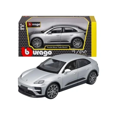 PORSCHE MACAN 4 ELECTRIC: Official 1:24 scale replica of Porsche's electric SUV, with dynamic lines and accurate details that faithfully reproduce the innovative design of the original model. FEATURES: Diecast model with opening bonnet and doors, detailed interior and high-quality finish. A perfect product for collectors and enthusiasts of the Porsche brand and electric mobility. RECOMMENDED AGE: Scale model cars for adult collectors, not suitable for children under 3 years of age. IDEAL AS A GIFT: Looking for the perfect gift for a car enthusiast? A high-quality scale model car is the perfect choice! You cannot choose the colour (available in copper or silver), the item will be shipped at random. BBURAGO: The iconic brand of die-cast scale model vehicles licensed by major car manufacturers. Its models have contributed to the growth of children around the world and the passion of adults and avid vehicle collectors., Manufacturer: MAY CHEONG GROUP