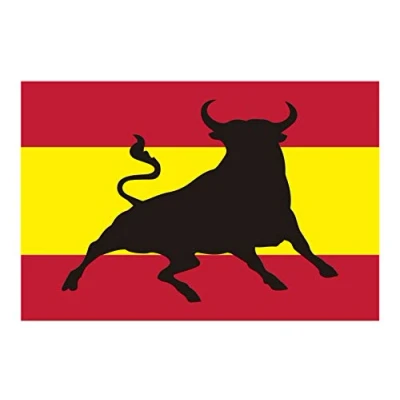 1 unit High quality adhesive. Measurements: 10 x 6.7 cm. Flag of Spain with black bull in the center