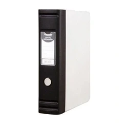 Box file for A4 documents. 2 D-ring mechanism with 50mm capacity for up to 500 sheets. Heavy duty polypropylene. Finger ring for easy retrieval from a shelf. Removable spine label. Dimensions: W80 x D290 x H325mm. Colour: Black.