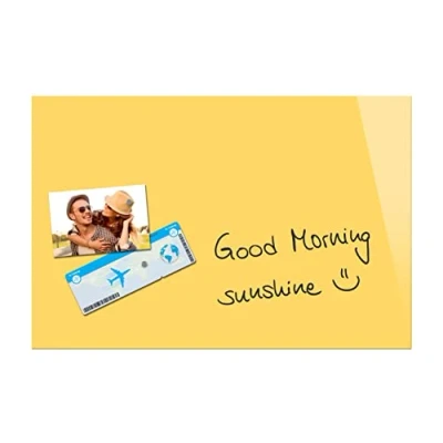 Yellow magnetic Glass Boards made from toughened safety Glass (EN 12150-1), to write on with all standard non-permanent Board and chalk markers and notes are attached with strong magnets 60 x 40 cm - perfect for use in hallways or home offices HIGH QUALITY : high quality detachable paper (80 g/m²) - Made in Germany COMPLETE FLATNESS: The corners do not bend due to the gluing at the foot and at the top of the page | The solid cardBoard back (600 g/m²) underlines the perfect flatness and ensures great writing comfort LOTS OF SPACE: For your notes and creativity