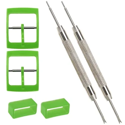 Be In Your Mind 2 Sets Watch Strap Buckle and Band Loop Kits With Spring Bar Tools Compatible Swatch Replacement Parts 16mm Internal Width Green