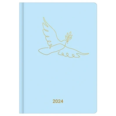 Book calendar in the format 14.8 x 21 cm One week on one page 4-language calendar International Holidays Moon phases Pages to design yourself Flexible cardboard envelope with elegant metallic embossing
