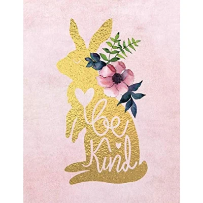 Be Kind: Pink & Gold Bunny Rabbit Notebook College Ruled with Lined Pages (Composition Book, Journal) (8.5 x 11 Large)