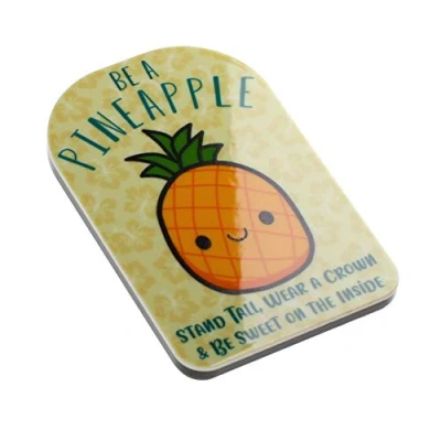 Perfect gift for Birthdays, Christmas or any other occasion Fun, bold design featuring funny ‘Be a Pineapple: Stand Tall, Wear a Crown and Be Sweet on the Inside’ message and a cute smily pineapple Crafted from thick acrylic, this strong magnet will be a fun and colourful addition to your fridge Dispatched with presentation card as shown Unique design created in Wales