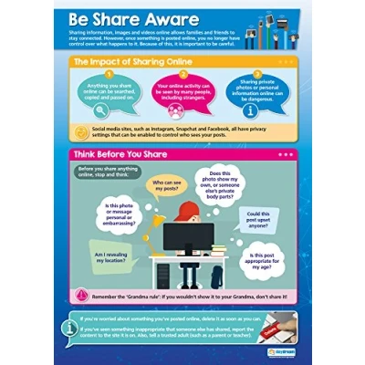 Be Share Aware Online Safety Posters Gloss Paper measuring 850mm x 594mm (A1) Internet Class Education Charts by Daydream
