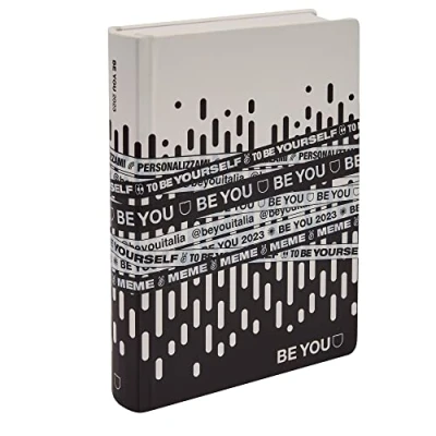 Be You collection 2022-2023 Meme size 16.5x2.8x12.5cm Rounded corners, cover protective covers, inner envelopes, stickers. All elements that become a character of the agenda making it inimitable in its kind! Each Be You contains the "Patacchini" exclusive stickers to decorate your Be you. Be You diary with internal layout with pattern and dotted pages Lots of fun memes with your favorite creators