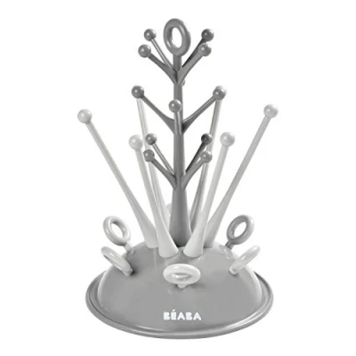 Béaba Baby Bottle Drainer Tree, Large Capacity 6 Bottles and Accessories, Removable Water Collection Tray, Practical, Clever Design, Grey