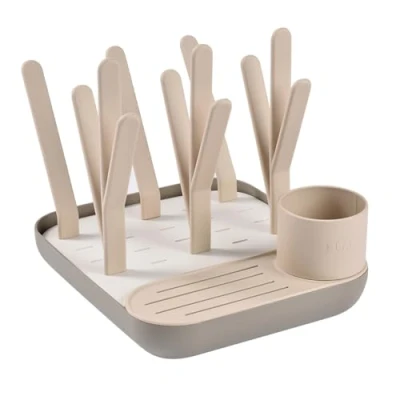 BÉABA Baby Bottle Drying Rack and Drainer, Large Capacity, Modular Design, Holds Up to 6 Bottles Tableware, Accessories Holder, Optimised Drainage, Easy Storage, Practical Clay