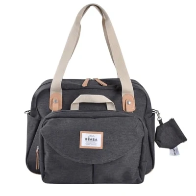BÉABA, Geneva Changing Bag, Modular, Large Capacity, Multiple Storage compartments, Removable Front Pocket, mat, Insulated Lunch Stroller Attachment System, Dark Chiné Grey