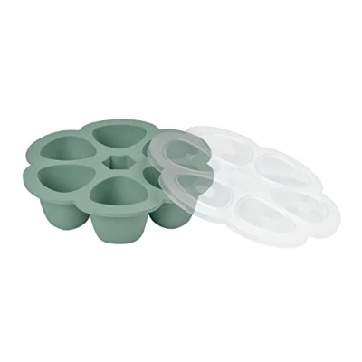 Béaba Multiportions Premium Silicone, Extreme Thermal Resistance, Oven and Microwave, 6 Independent compartments, Airtight Lid, Made in Italy, Sage Green, x 150 ml