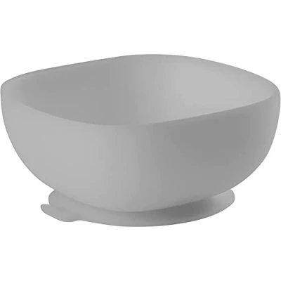 BÉABA Silicone Bowl with Suction Cups Baby and Children Food Weaning Non slip Sticks perfectly to the table high chair tray Microwave safe Grey
