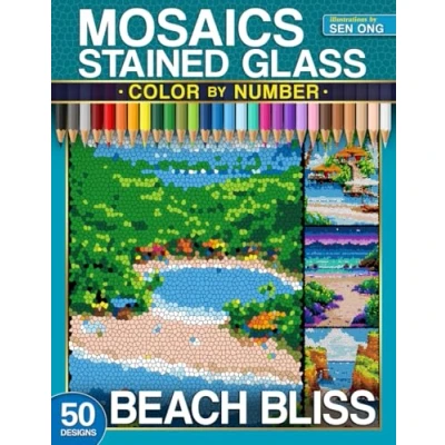 Beach Bliss Stained Glass Mosaics Color by Number: 50 Dreamy Coastal Landscapes