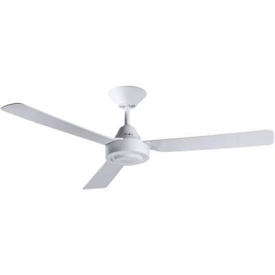 ManoManoGeneral description The Calypso White Ceiling Fan is a stylish and efficient addition to any room, featuring a sleek white design that complements various interior styles. With a diameter of 122 cm (48 inches), it provides optimal airflow and comfort, making it perfect for both summer and winter use. Technical specifications Voltage: 220-240 V ~ 50 Hz Diameter: 122 cm / 48" Housing colour: white Blade colour: white Blade pitch: 8.5° Max. motor wattage: 45 W Max. revolutions per minute: 220 Max. airflow: 170 m³/min / 6003 cfm Ceiling to blades: 30 cm / 11.8" Overall drop: 31 cm / 12.2" Diameter canopy: 15.5 cm / 6.1" Max. ceiling slope: 18° Weight: 4 kg / 8.8 lbs Installation Includes wall controller for easy operation Manual switch for summer and winter mode on the housing
