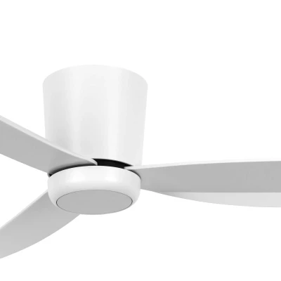ManoManoGeneral description The DC Ceiling Fan Array in white features a sleek design with a powerful motor, providing efficient airflow for any room. It includes a remote control for easy operation. Technical specifications Voltage: 220-240 V ~ 50 Hz Diameter: 137 cm / 54" Housing colour: white Blade colour: white Motor wattage: 4 - 35 W Revolutions per minute: 85 / 104 / 126 / 153 / 175 / 208 Max. airflow: 155 m³/min / 5473 cfm Overall drop: 23 cm / 9.1" Weight: 4.2 kg / 9.3 lbs Compatibility and accessories Includes remote control with 6 fan speeds / off, running direction, and timer Installation Not suitable for sloping ceilings Usage Forward and reverse function for summer and winter mode