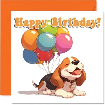 Beagle Birthday Card Balloon Animals Happy Cards for Son Daughter Brother Sister Grandson Granddaughter Niece Nephew Cousin, 145mm Bday Greeting