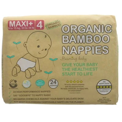 Beaming Baby Organic Bamboo Eco Nappies Maxi Plus Size 4 (9 15 kg / 23 34 lb) 24 in Pack. Biodegradable, Hypoallergenic, No Nappy Rash, Recyclable Paper Packaging