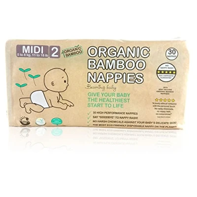 Beaming Baby Organic Bamboo Eco Nappies Size 2 (5 8 kg/11 18 lb) 30 in Pack. Biodegradable, Hypoallergenic for Sensitive Skin, Recyclable Paper Packaging