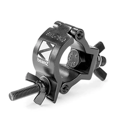 Large weight security: Secure your stage lighting with the BeamZ BC35B, a robust half coupler clamp supporting up to 75kg. Ideal for professional theatrical setups Sturdy and long lasting built: Featuring lightweight aluminium construction with a sleek black finish, this clamp seamlessly integrates with any stage design for optimal aesthetics Versatile fit: These clamps are perfect for 32-35mm truss tubes, making it a must-have lighting clamp for varied lighting arrangements and truss systems in any event Ease of installation: This half coupler clamp comes with a simple butterfly and nut mechanism ensures your lighting is fixed quickly and securely, minimizing setup time Designed for reliability, the BC35B lighting truss clamp is essential for small-scale installations, offering strength and ease of use for technicians