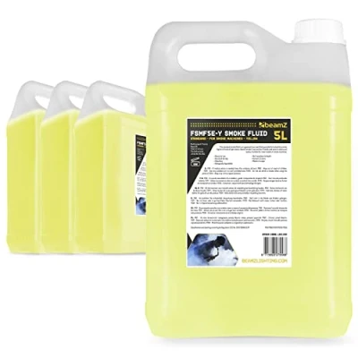 beamz Eco Smoke Machine Fluid 20L Pack, 4x 5L Yellow Coloured Fog Liquid, Non Toxic Water Based Formula, Friendly Low Density White for Parties, Events, Stage & Halloween Effects