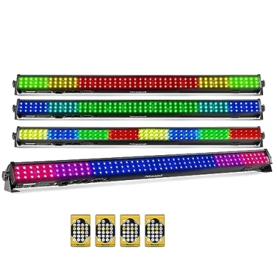 beamz LCB144 MKII LED Light Bar Package 4x RGB Wall Washer DJ Strip Lights with DMX, Sound Activation, Colour Mixing for Venue & Marquee Uplighting, Complete Event Lighting System