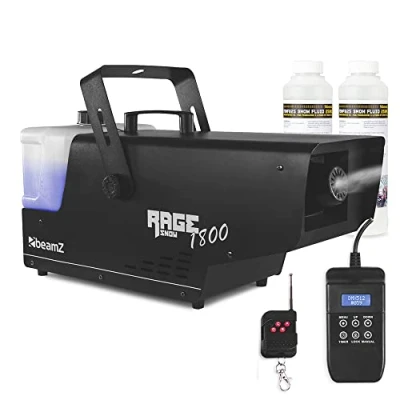 beamz RAGE1800 Snow Machine with 10L Fluid, Professional Fake Artificial Effect Maker for Parties, Events, Christmas, DJ, Stage, Indoor & Outdoor Use
