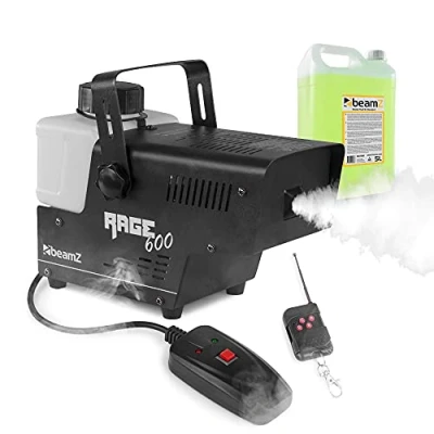 beamz RAGE600 Smoke Machine Set 600W Halloween Fogger with Wired & Wireless Remote Controls and 5L Fluid for Home Parties, Disco Lighting Effects