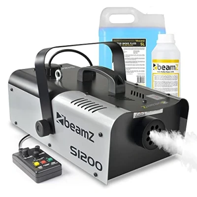 beamz S1200 MKII Remote Control Smoke Machine with 5L Blue Fluid & Cleaner Perfect for Parties, Events, Halloween much more Professional Fog Machine,