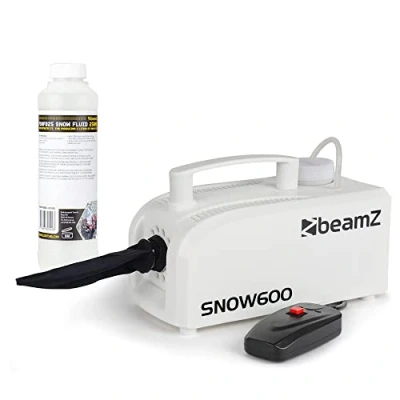 beamz Snow600 Artificial Snow Machine with 5L Concentrated Fluid, Ideal for Party Events, Creating Winter Atmosphere at Parties, Weddings, DJ and Large Venues