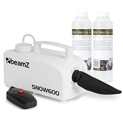 beamz Snow600 Snow Machine with 10L Concentrated Fluid Powerful Fake for Indoor and Outdoor Use Ideal Parties, Events, Winter Effects