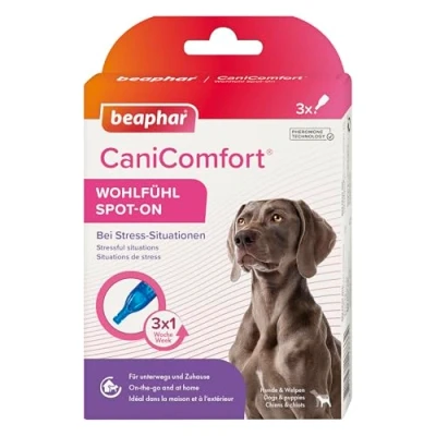 IDEAL FOR SHORT-TERM STRESSFUL EVENTS THAT MAKE YOUR DOG NERVOUS: Sometimes unexpected stressful events take us by surprise, such as thunderstorms, fireworks, loud noises, an unexpected car journey or a vet visit. Beaphar CaniComfort Calming Spot-On provides comfort and reassurance when your dog needs it the most. BEGINS TO WORK IN 15 MINUTES: Once applied, the spot-on works quickly and will start creating a calming effect around 15 minutes after application. PHEROMONE TECHNOLOGY PROMOTES FEELINGS OF REASSURANCE AND WELL-BEING: Dogs communicate through natural messages called pheromones. The Dog Appeasing Pheromone (DAP) is naturally produced by the mother when she nurses her puppies. This provides a continuous and reassuring message to let them know that this is a safe and calm area for them to be in. Beaphar CaniComfort contains a copy of this pheromone which is instantly recognisable to all dogs helping to comfort them and reduce unwanted behaviour. SCIENTIFICALLY RECOGNISED: Pheromone technology is widely recognised by behavioural experts and vets for its ability to create an instinctive calming response for your dog. EASY-TO-USE: Apply one pipette to the top of your dog’s head, between the ears at least 15 minutes before a potentially stressful situation. The calming effect continues to work for up to one week. SUITABLE FOR DOGS AND PUPPIES: Specifically designed for dogs of all ages and puppies from the moment they leave the litter. It calms without sedating and does not affect humans or other pets. CAN BE USED ALONGSIDE OTHER BEAPHAR CANICOMFORT PRODUCTS: Can be used at the same time as other products in the Beaphar CaniComfort range, such as the Beaphar CaniComfort Calming Diffuser, Collar and Spray. Can also be used in conjunction with Beaphar CatComfort.