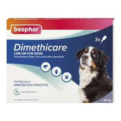 Beaphar Dimethicare Line On Flea & Tick Control For Large Dogs over 30kg 3 pipettes Physically Immobilises Fleas, Ticks Other Parasites Pesticide Free from 12 weeks old