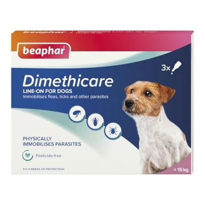 Beaphar Dimethicare Line On Flea & Tick Control For Small Dogs up to 15kg 3 pipettes Physically Immobilises Fleas, Ticks Other Parasites Pesticide Free from 12 weeks old