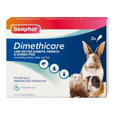 Beaphar Dimethicare Line On Mite, Flea and Lice Control for Rabbits, Guinea Pigs & Ferrets 3 treatment pack Physically Immobilises Parasites Pesticide Free From 12 weeks old