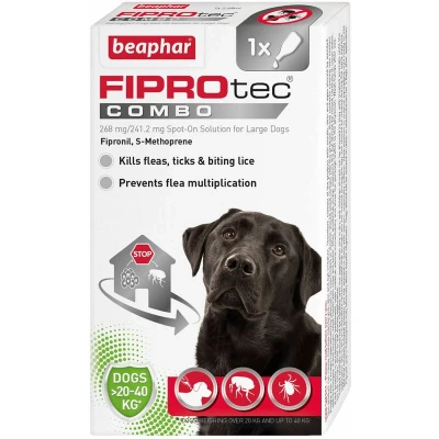 Beaphar FIPROtec® COMBO for Large Dogs (2040kg) Kills Fleas, Flea Eggs & Ticks Stops Fleas Multiplying on Pet and in Home Vet Strength Treatment 1 Pipette
