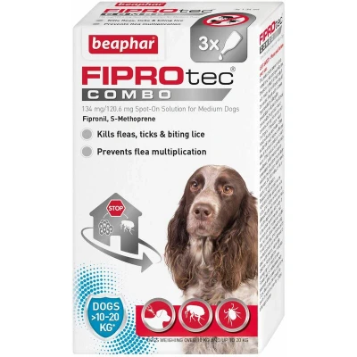 Beaphar FIPROtec® COMBO for Medium Dogs (1020kg) Kills Fleas, Flea Eggs & Ticks Stops Fleas Multiplying on Pet and in Home Vet Strength Treatment 3 Pipettes